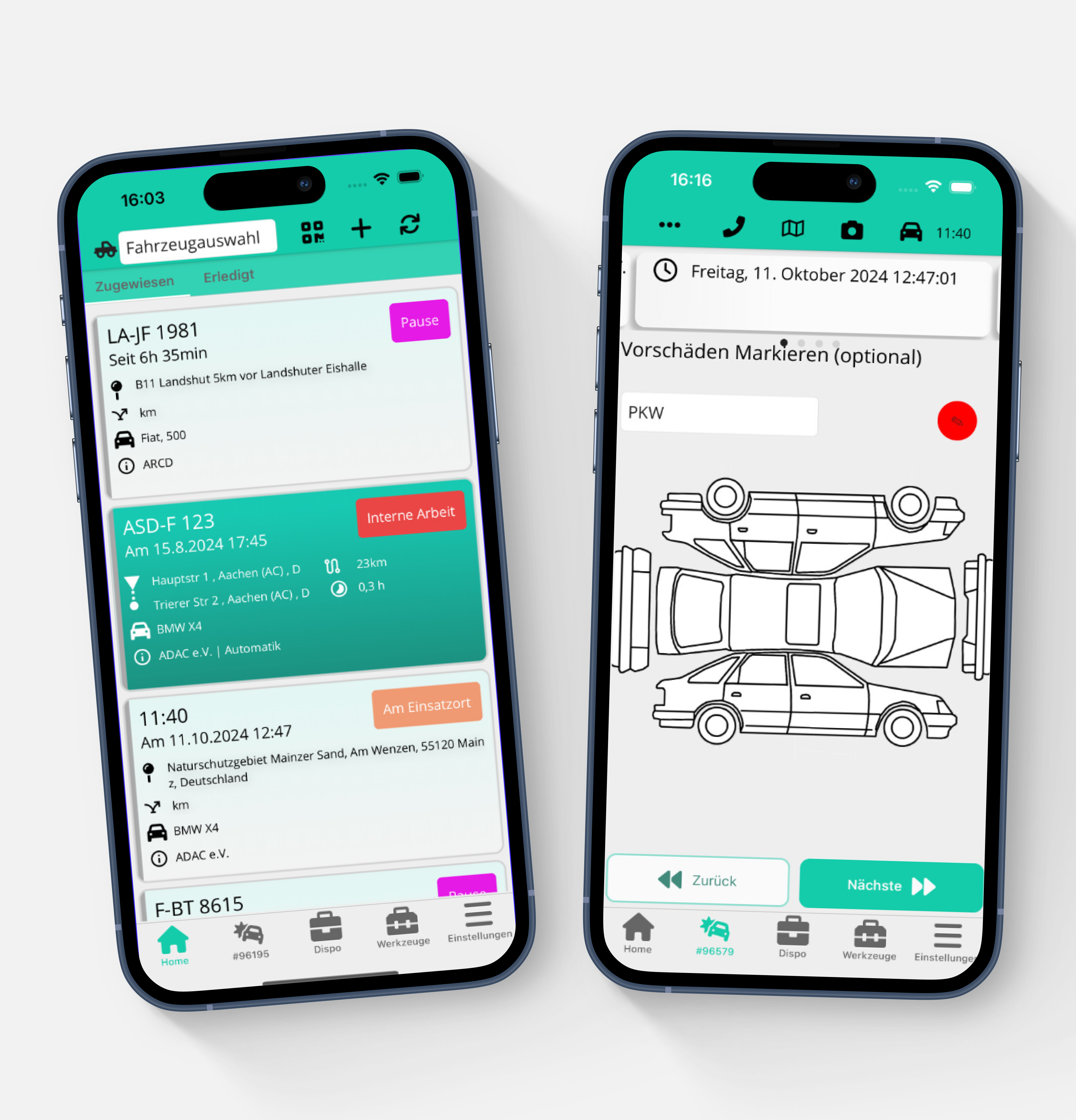 für Ihre Abschlepp- und Transportfahrer. Unterwegs Aufträge mit individuell zugeschnittenem Ablauf bearbeiten, disponieren und im Team kommunizieren.